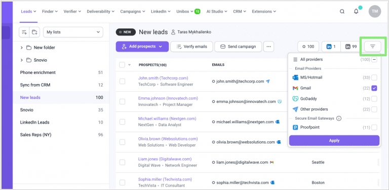 Сервіс email-розсилок Snov.io представив кілька оновлень. У панелі керування кампаніями з'явилися масові дії: запуск, призупинення, відновлення, завершення, архівування, видалення. Масова синхронізація облікових записів електронної пошти Unibox дозволяє легко управляти великою кількістю поштових скриньок, які ви використовуєте для розсилки. Раніше оновлення їх налаштувань означало необхідність заходити в кожну окремо. Також, Snov.io тепер автоматично визначає, який поштовий провайдер (наприклад, Gmail, Outlook або Yahoo) використовують ваші потенційні клієнти та відображає цю інформацію на панелі керування «Потенційні клієнти». Можна, наприклад, відфільтрувати лише користувачів GMail і надіслати їм розсилку з гуглівської поштової скриньки. До речі, в новій версії також з'явилися поштові скриньки з покращеною доставкою (без прогріву), що працюють на платформі Google.
