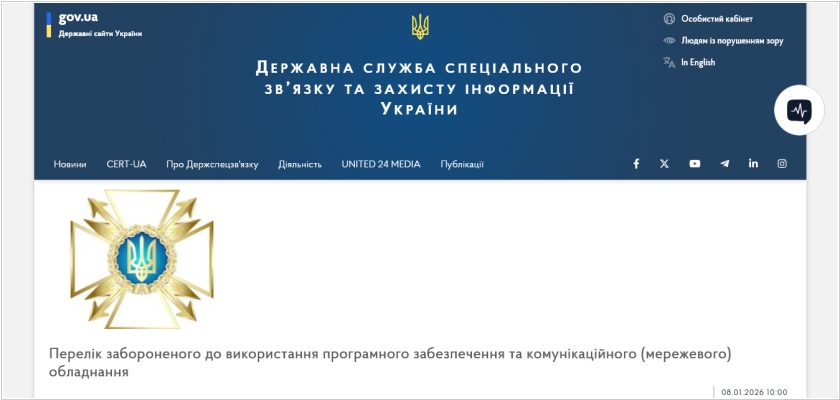 Державна служба спеціального зв'язку та захисту інформації України оприлюднила відкритий список забороненого програмного забезпечення. До нього увійшли 1C: Бухгалтерія та інші продукти 1С, програми BAS та UA-Бюджет. Створення цього переліку, передбачене постановою №1335 Кабінету Міністрів України від 22 жовтня 2025 р. У самих документах складно зрозуміти, для кого цей список є обов'язковим, але коментуючі джерела кажуть, що цей список "є централізованим та офіційним джерелом інформації для органів державної влади, органів місцевого самоврядування, органів місцевого самоврядування, технологічних рішень, використання яких створює неприпустимі ризики національної безпеки". Тобто. для звичайних компаній цей перелік не є обов'язковим.