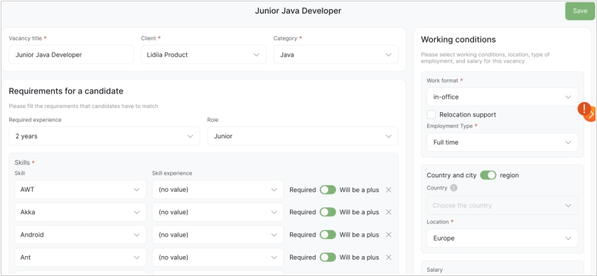 В оновленні програми для рекрутингу CleverStaff на сторінку створення та редагування вакансії доданий новий дропдаун «Регіон» (Європа, Північна Америка, Латинська Америка, Азія, Океанія). Таким чином, при створенні вакансії ви можете вибрати не лише конкретну країну та місто, а й цілий регіон світу – наприклад, усю Європу чи Азію. Також, з'явилася можливість обрати кілька країн під час створення вакансії – можна обрати до трьох країн одночасно. Якщо вибрано декілька країн, вибір міста автоматично блокується, щоб уникнути плутанини. Такі зміни доступні і в заявках вакансій. В опції розширеного пошуку тепер є єдиний дропдаун для вибору регіонів, країн та міст. Підтримується мультивибір до 15 локацій, можна шукати вакансії не лише по конкретній країні чи місту, а й у цілому регіоні. Вибір регіону автоматично охоплює всі країни, що входять до нього, але їх можна уточнити вручну.