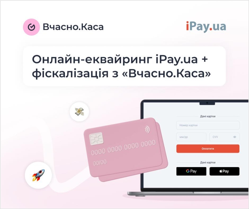 Вчасно.Каса та iPay.uа запустили партнерську інтеграцію, що поєднує онлайн-еквайринг та фіскалізацію в один зручний та керований процес. Рішення створене для бізнесів, яким важлива не просто оплата, а стабільна платіжна інфраструктура: прийом онлайн-платежів на сайті або у додатку, підтримка різних платіжних сценаріїв (разові, рекурентні, часткові), API та кастомні сторінки оплат під логіку бізнесу, контроль транзакцій, статусів та звітності. Платіж та фіскалізація працюють синхронно – без ручних дій та зайвих інтеграцій. Рішення підходить для e-commerce проектів, сервісів та платформ зі складними чи нестандартними сценаріями оплат.