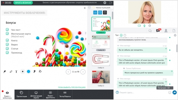 Многофункциональный мультимедийный сервис для организации и проведения вебинаров, онлайн-тренингов, веб конференций, разных форм дистанционного обучения и делового общения.