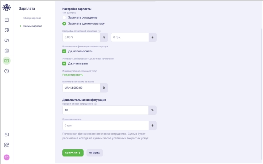 У сервісі онлайн-бронювання EasyWeek оновився модуль зарплат. Тепер можна встановити мінімальну зароблену суму за вихід майстрів, після якого розпочинаються відрахування комісій, комісію для адміністраторів. Всі розрахунки проводяться на основі даних з оформлених продажів у салоні та заздалегідь налаштованих схем розрахунку. Схеми розрахунку зарплати EasyWeek забезпечують можливість налаштування розрахунку для будь-якої посади персоналу в компанії. Ви можете налаштувати схему заробітної плати індивідуально під кожного співробітника.