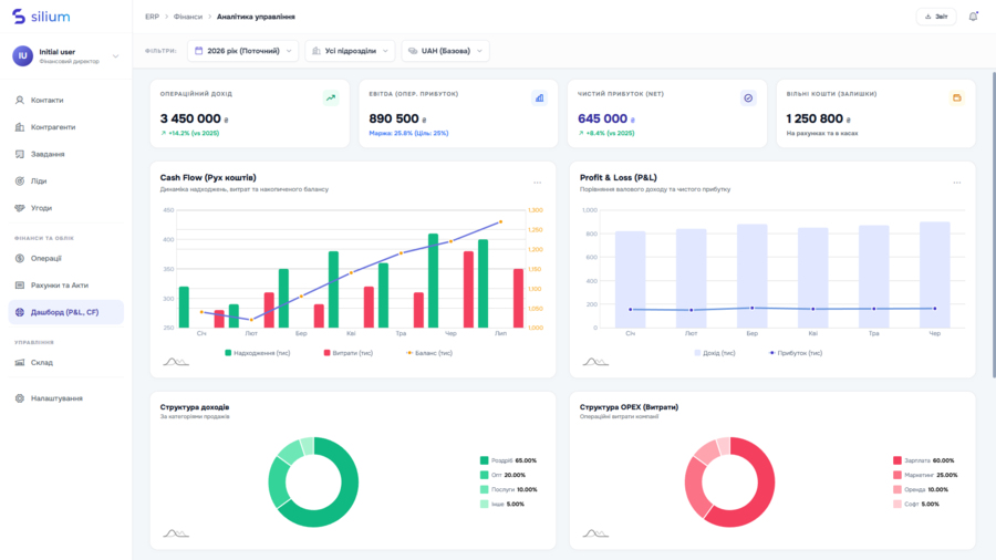 ERP система, що поєднує CRM, розумну систему управління складом, фінансами, документообіг, звіти, HRM. Гнучка кастомізація. Альтернатива 1С.